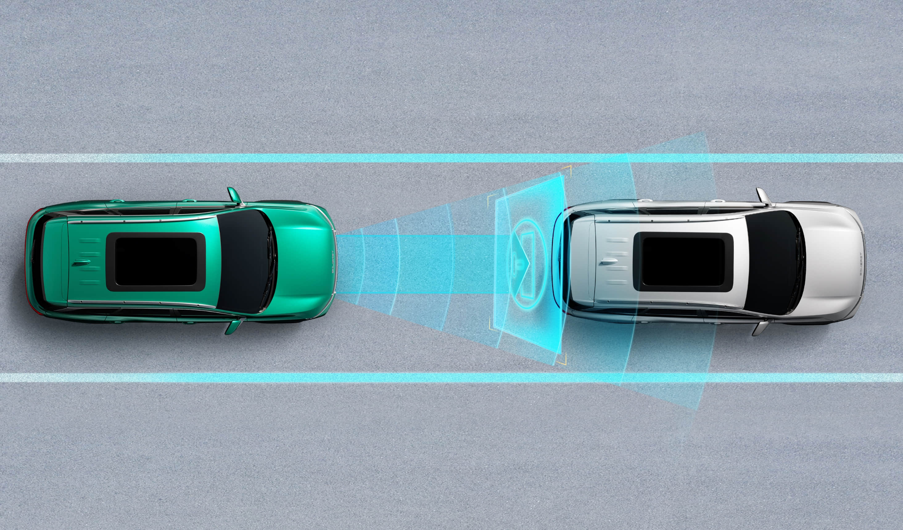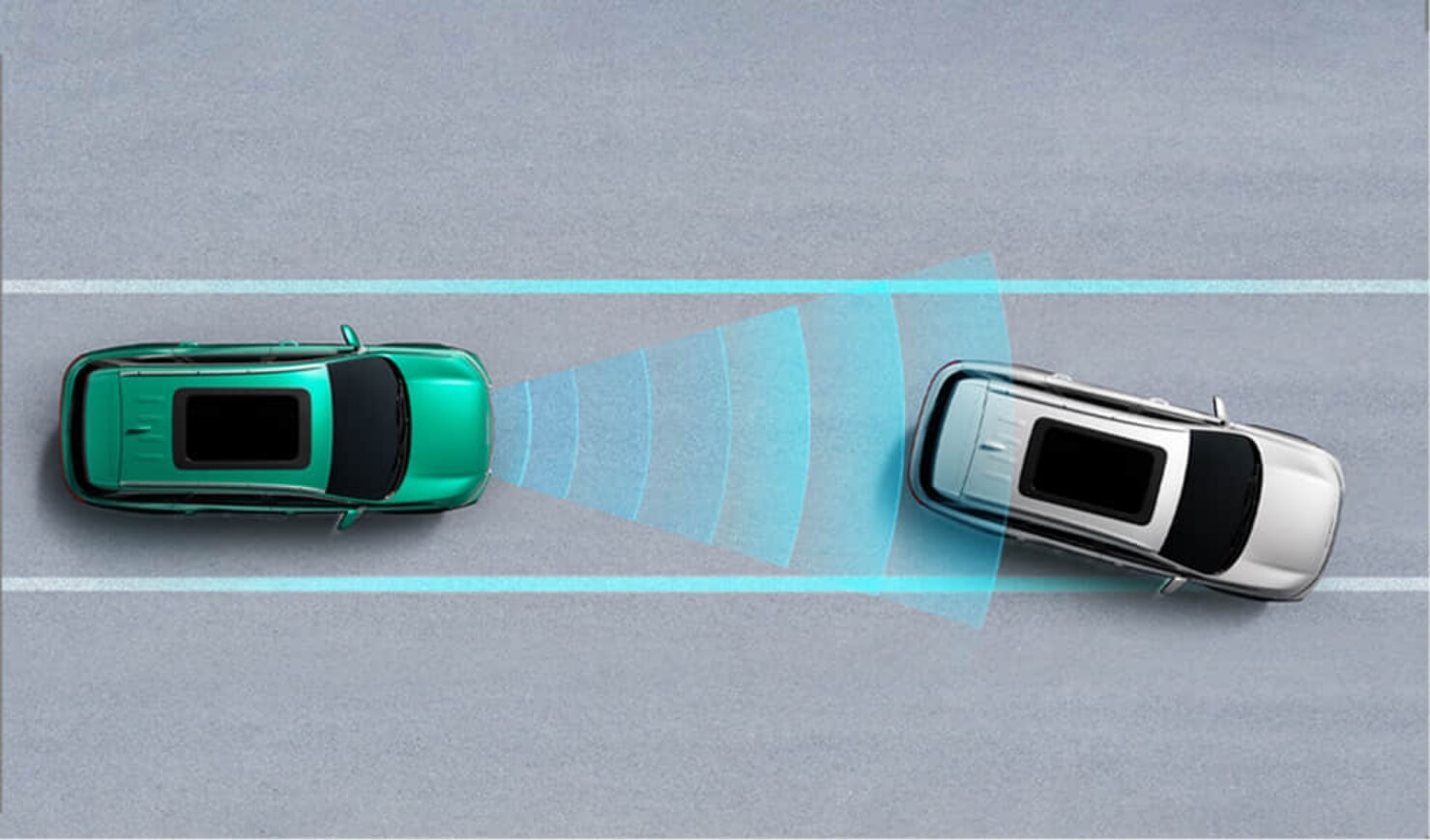 System automatically adjusts the car's speed to maintain a safe following distance.