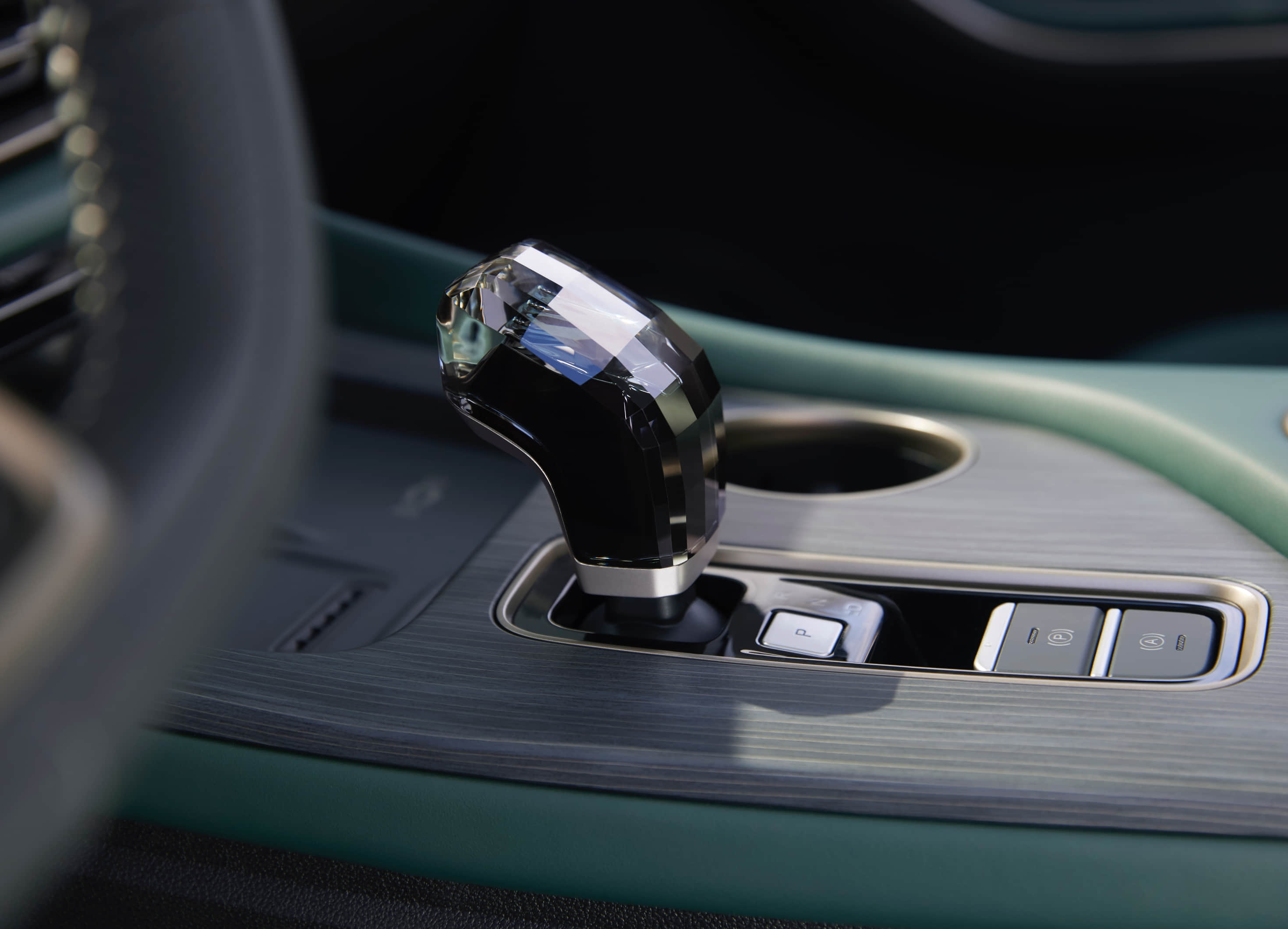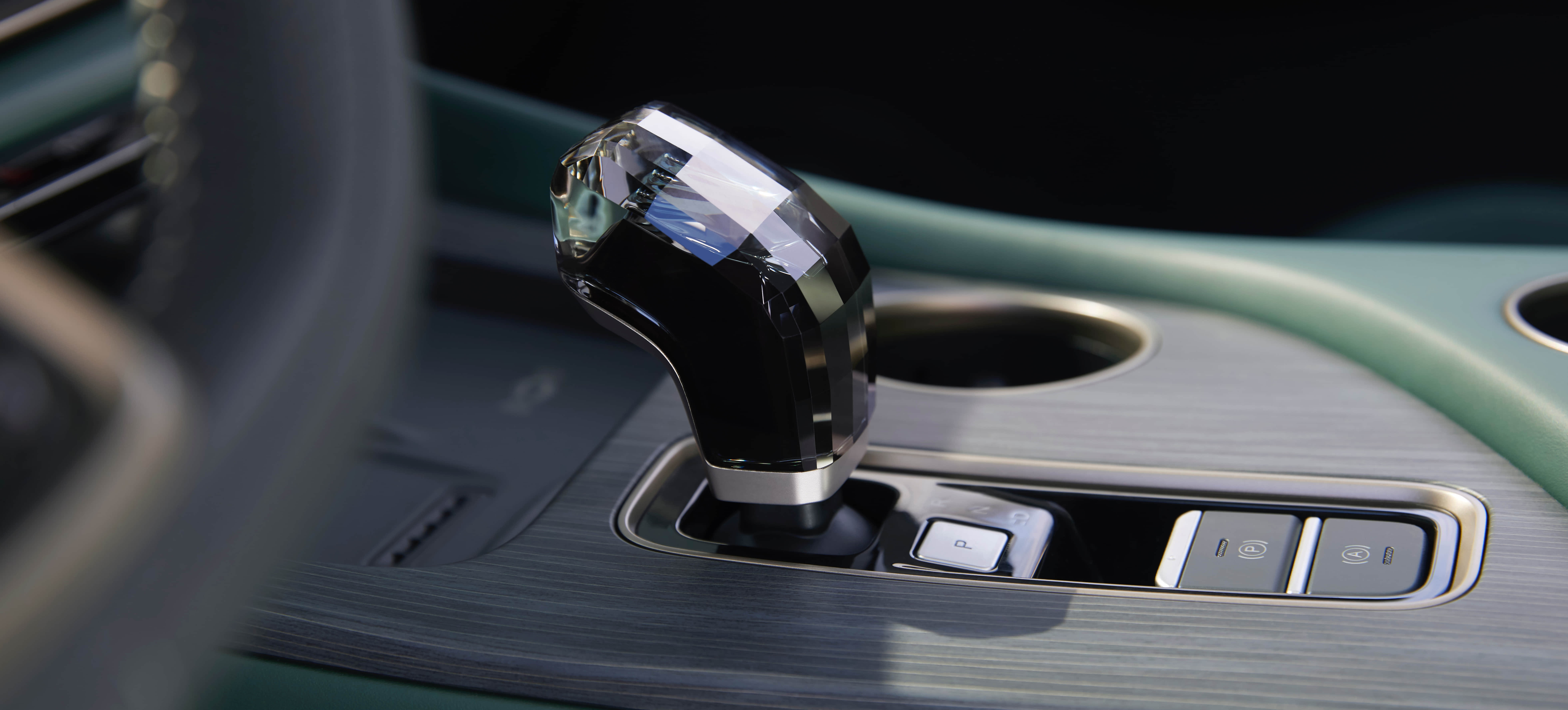 Carefully crafted with 176 square facets, forming a multifaceted crystal gearshift resembling intricately cut diamonds. Perfectly unifies advanced luxury with comfortable handling.